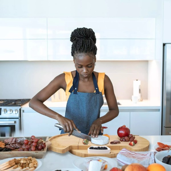 Ovaj pladanj ne samo da elegantno prikazuje vaše grickalice, već služi i kao daska za rezanje. Njegova glatka drvena površina olakšava rezanje i posluživanje svih vaših omiljenih grickalica na jednom mjestu.