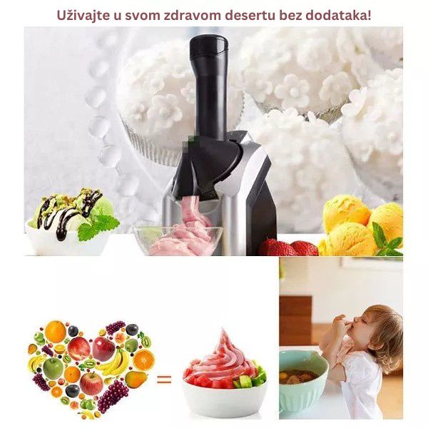 S ovim uređajem možete pripremiti i razne deserte, uključujući smrznuti jogurt s dodatkom voća ili bez njega, osvježavajući sorbet i druge ukusne smrznute deserte.