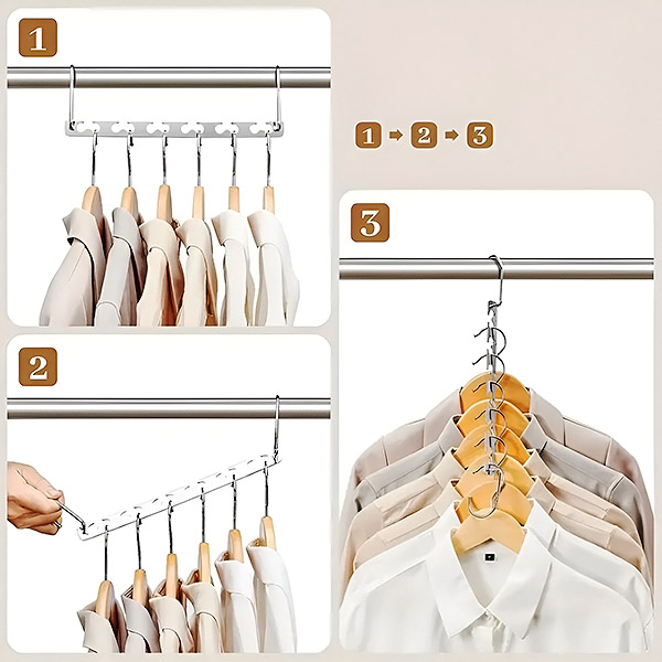 Naša vješalica za odjeću pruža jednostavno rješenje za održavanje odjeće urednom bez ikakvih nabora. Ova vješalica osigurava da svaki predmet ima dovoljno prostora, sprečavajući neželjene bore.