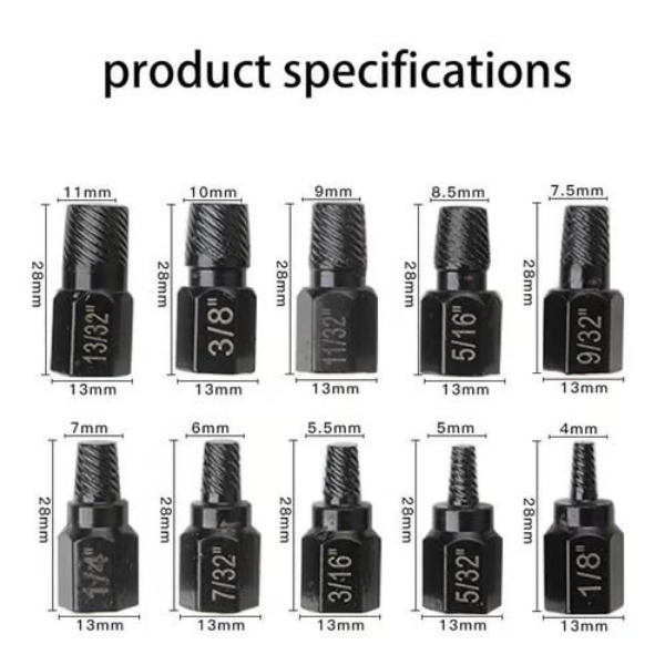 SCREWX izvlakači vijaka dizajnirani su za hvatanje oštećenih vijaka i njihovo brzo uklanjanje. Uz odgovarajući nastavak za izvlačenje te bušilicu ili odvijač, možete otpustiti vijak i nastaviti popravak bez nepotrebnog napora.
