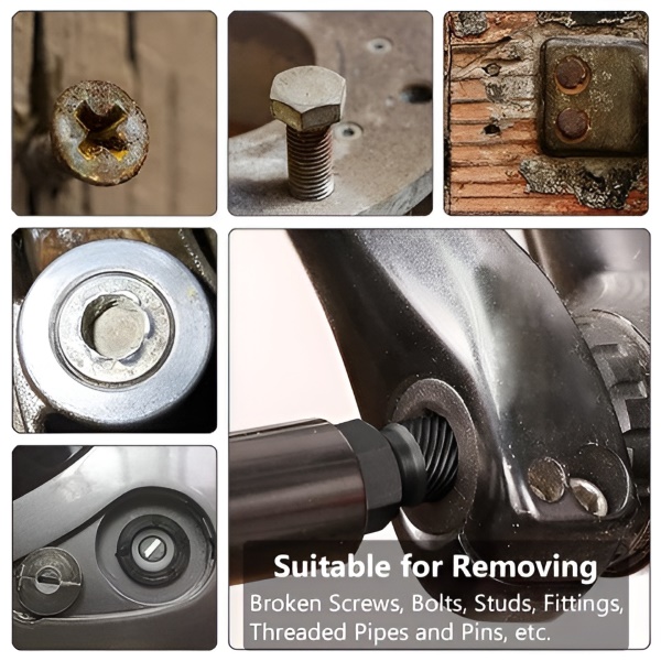 Izbušite, postavite izvlakač, okrenite suprotno od smjera kazaljke na satu — oštećeni vijci svaki put izlaze čisto, bez frustracija i gubitka vremena.