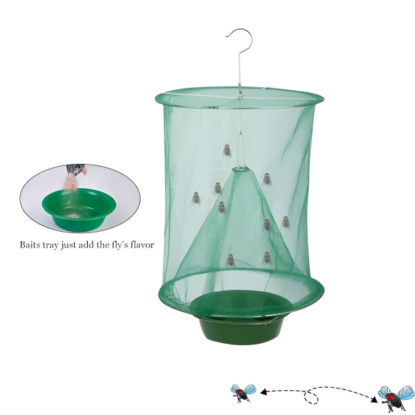 Muhe su prirodno privučene mamcem u plitici. Nakon što uđu u zamku, ne mogu pobjeći i na kraju umiru od dehidracije i gladi. Ova metoda osigurava visoku stopu hvatanja bez potrebe za štetnim kemikalijama. Učinkovito smanjite populaciju muha u vašem području.